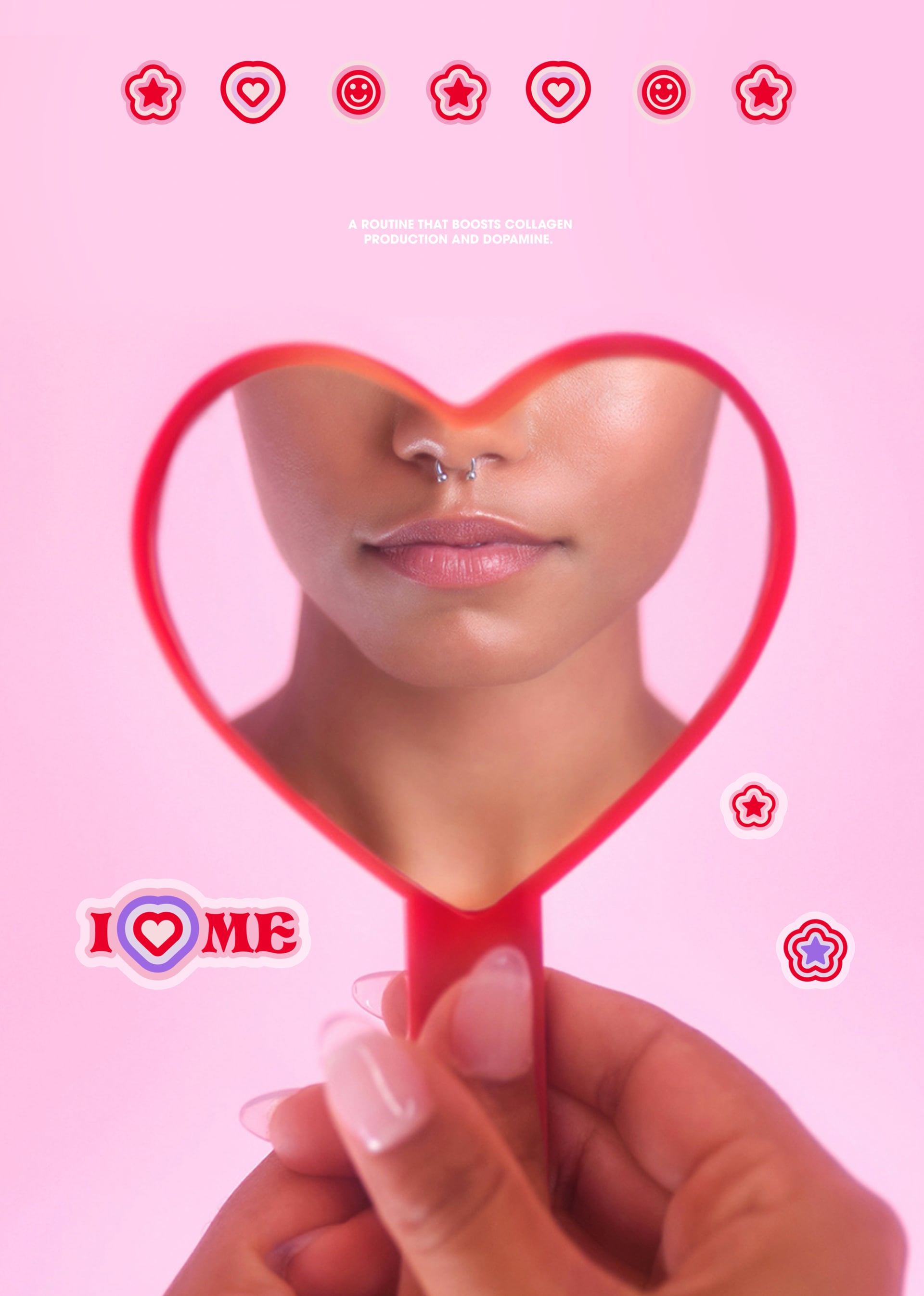 The goal was to create a brand that felt expressive and emotionally resonant without sacrificing credibility. Science-backed formulas, wrapped in a world that feels soft, playful, and empowering. Good skin. Better mood.